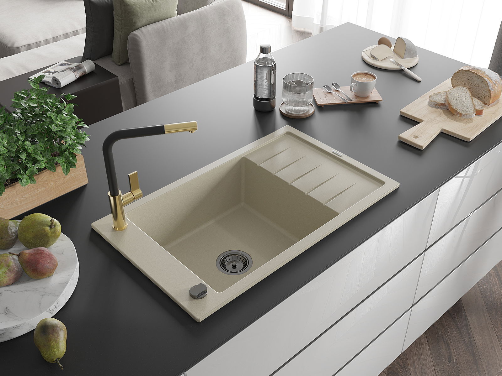 Dřez byl vyroben z vysoce kvalitního granitu. Představuje elegantní a především praktický doplněk každé kuchyně, bez ohledu na její styl. Vysoká kvalita a trvanlivost granitu zajišťují dlouholeté používání.