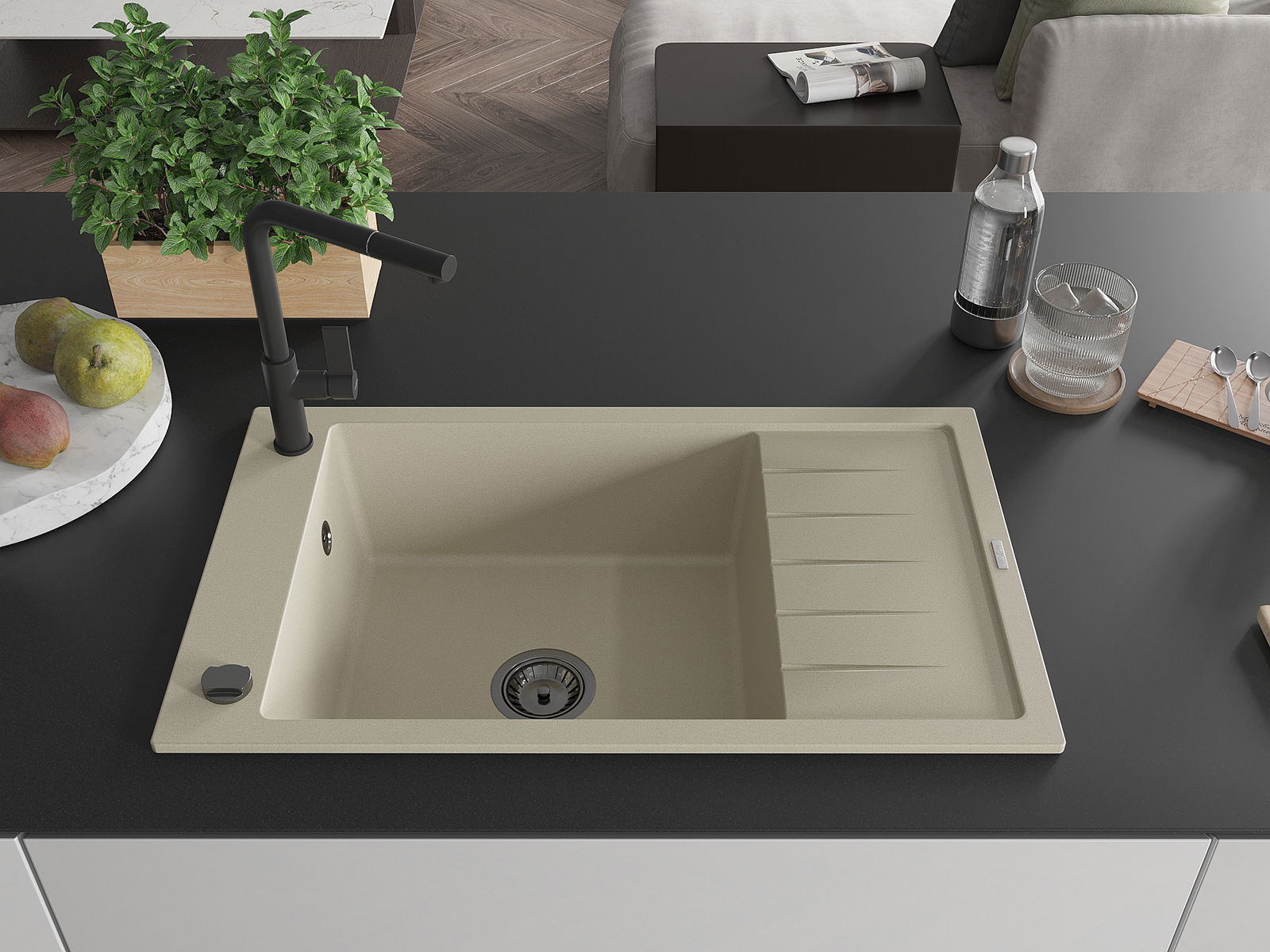 Dřez byl vyroben z vysoce kvalitního granitu. Představuje elegantní a především praktický doplněk každé kuchyně, bez ohledu na její styl. Vysoká kvalita a trvanlivost granitu zajišťují dlouholeté používání.