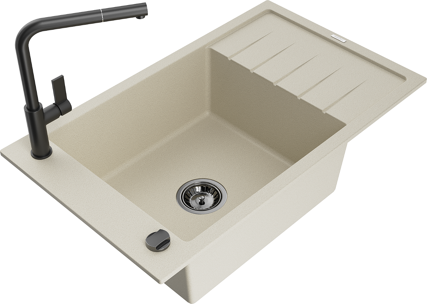 Mexen Elias granitový dřez 1-komorový s odkapávačem a kuchyňskou baterií Flora, béžový - 6511-69-670401-70-B