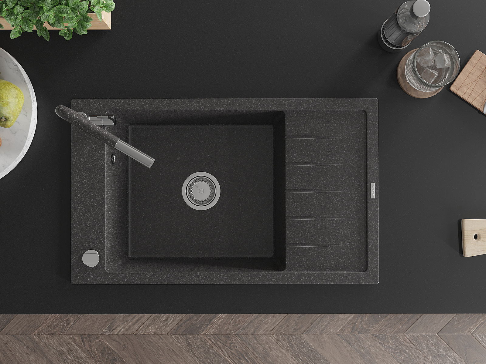 Dřez byl vyroben z vysoce kvalitního granitu. Představuje elegantní a především praktický doplněk každé kuchyně, bez ohledu na její styl. Vysoká kvalita a trvanlivost granitu zajišťují dlouholeté používání.