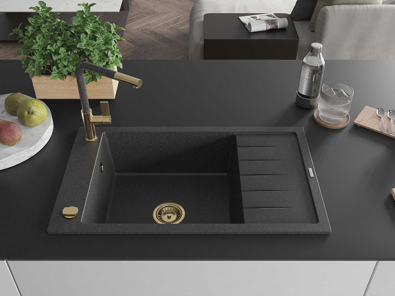 Dřez byl vyroben z vysoce kvalitního granitu. Představuje elegantní a především praktický doplněk každé kuchyně, bez ohledu na její styl. Vysoká kvalita a trvanlivost granitu zajišťují dlouholeté používání.