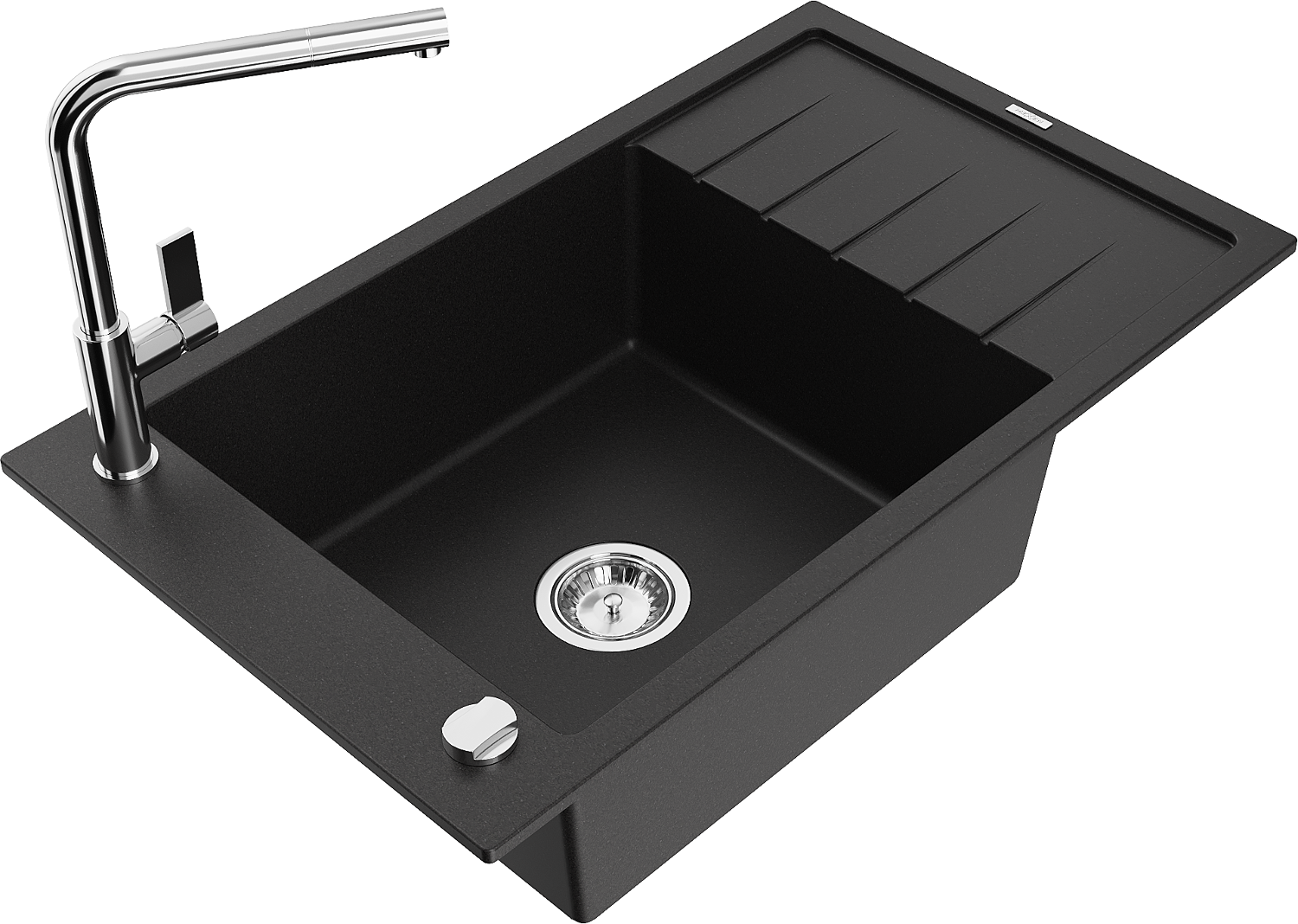 Mexen Elias granitový dřez 1-komorový s odkapávačem a kuchyňskou baterií Flora, černý - 6511-77-670401-00