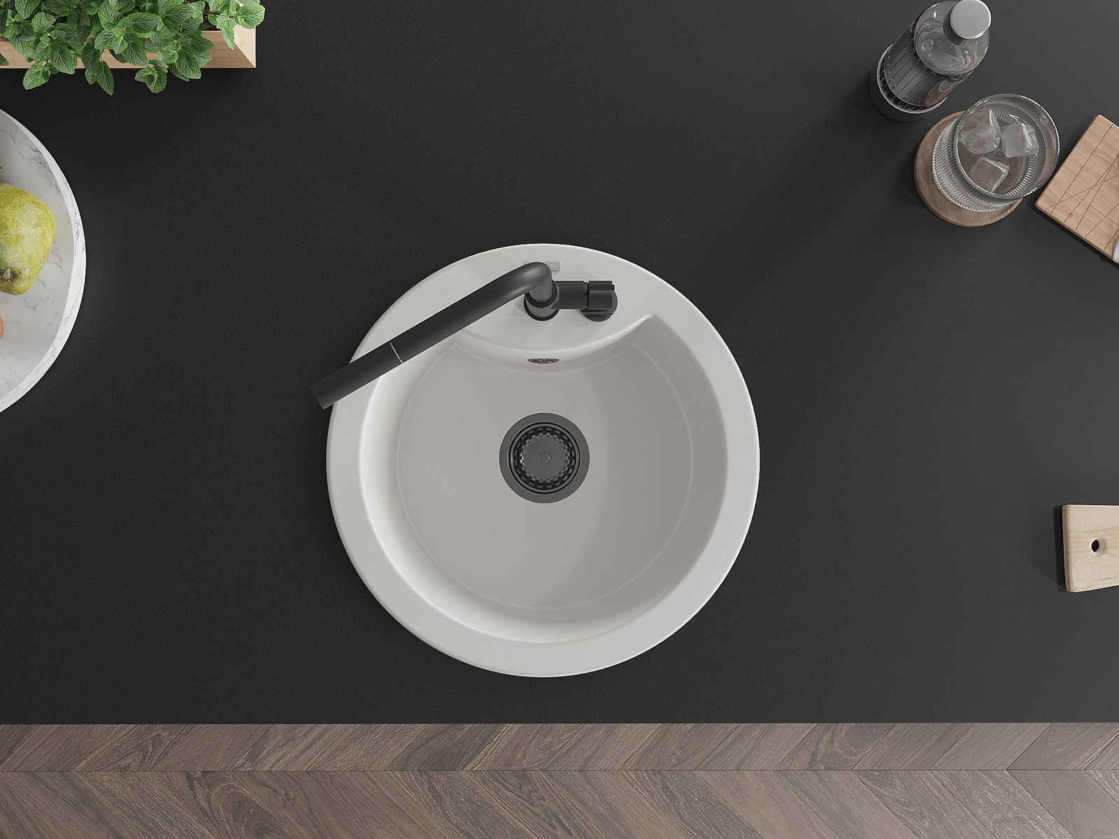 Povrch dřezu je odolný proti skvrnám a zabarvení, což usnadňuje jeho čištění a zachovává jeho barvu po dlouhou dobu používání. Estetický a praktický doplněk každé kuchyně.