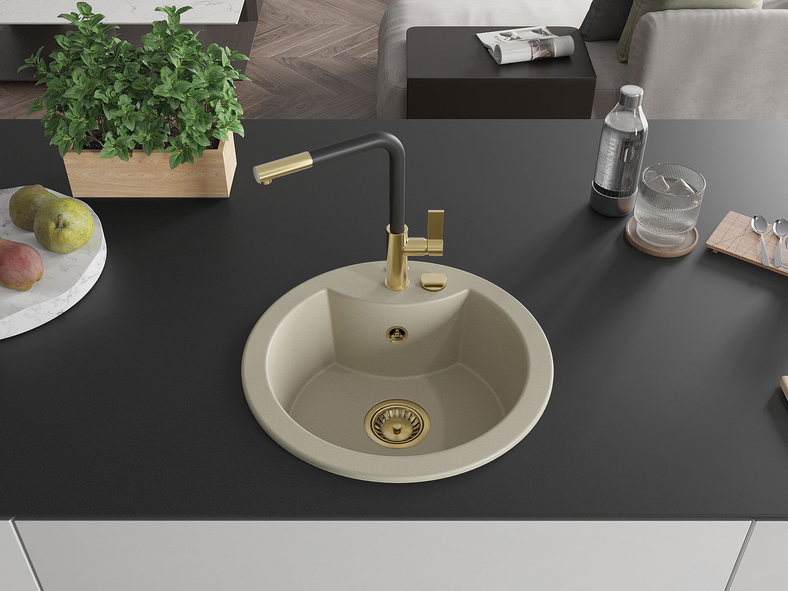 Dřez byl vyroben z vysoce kvalitního granitu. Představuje elegantní a především praktický doplněk každé kuchyně, bez ohledu na její styl. Vysoká kvalita a trvanlivost granitu zajišťují dlouholeté používání.