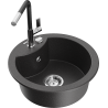 Mexen Diego granitový dřez 1-komorový s kuchyňskou baterií Flora, černý/stříbrný metalik - 6512-73-670401-07