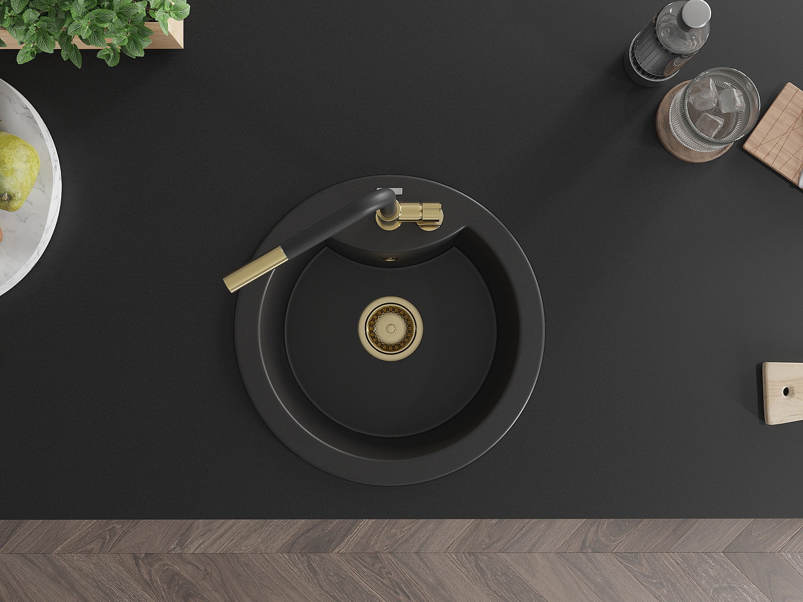 Dřez má předfrézovaný otvor o průměru 35 mm k samostatnému proražení. Může být použit například k montáži dávkovače na tekutinu, který eliminuje přítomnost plastových lahví v kuchyni a dodá jí elegantní finiš.
