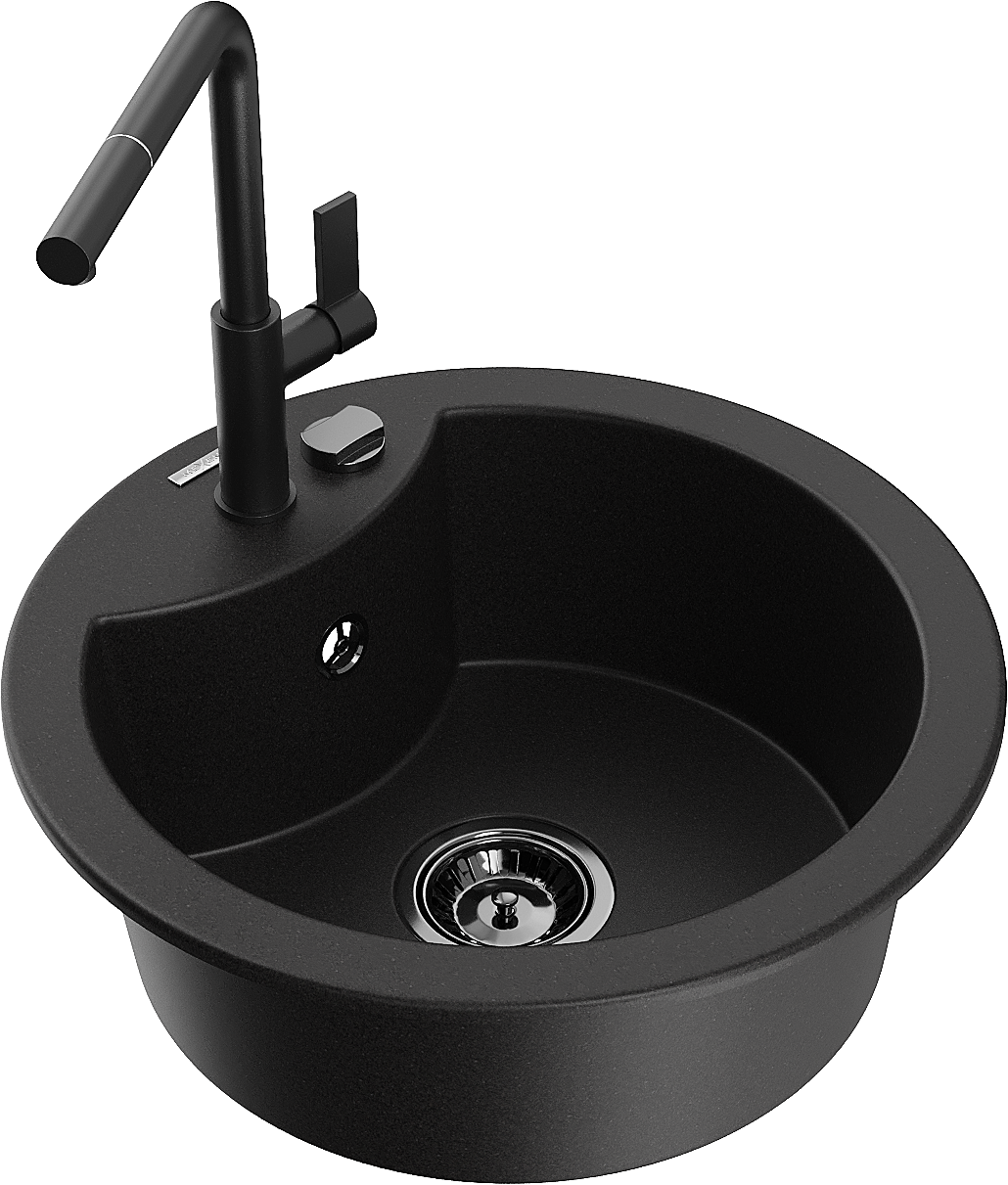 Mexen Diego granitový dřez 1-komorový s kuchyňskou baterií Flora, černý - 6512-77-670401-70-B