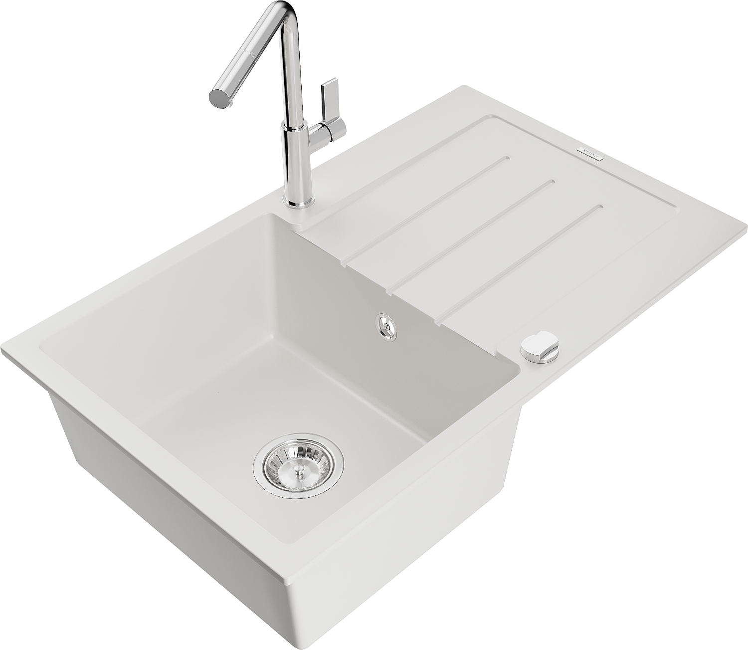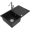 Mexen Bruno granitový dřez 1-komorový s odkapávačem a kuchyňskou baterií Flora, bílý - 6513-20-670401-00