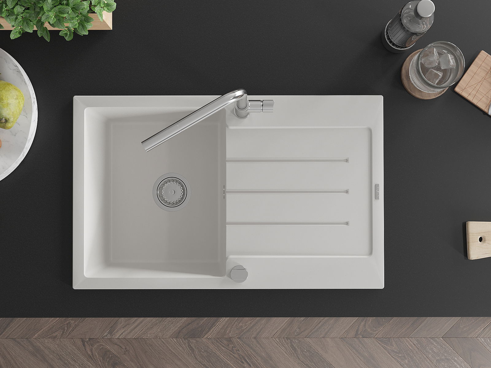 Povrch dřezu je velmi dobře vytvrzený, vyznačuje se výjimečnou odolností proti mechanickému poškození a poškrábání. Trvanlivý materiál umožňuje užívat si dobrý vzhled dřezu po mnoho let používání.