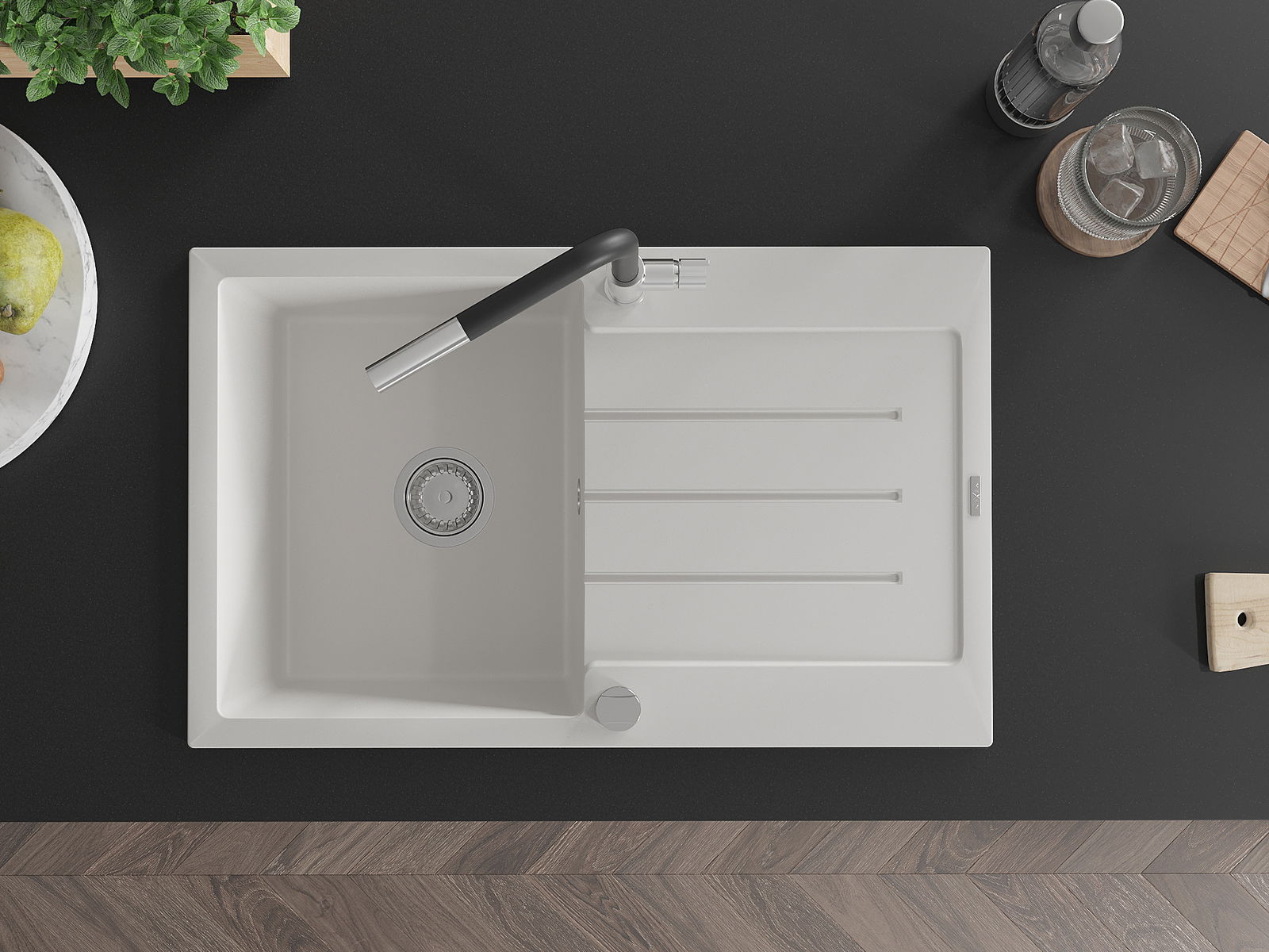 Povrch dřezu je velmi dobře vytvrzený, vyznačuje se výjimečnou odolností proti mechanickému poškození a poškrábání. Trvanlivý materiál umožňuje užívat si dobrý vzhled dřezu po mnoho let používání.