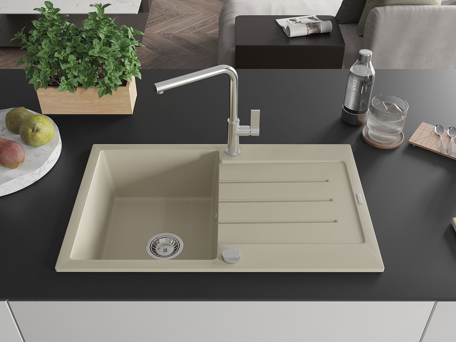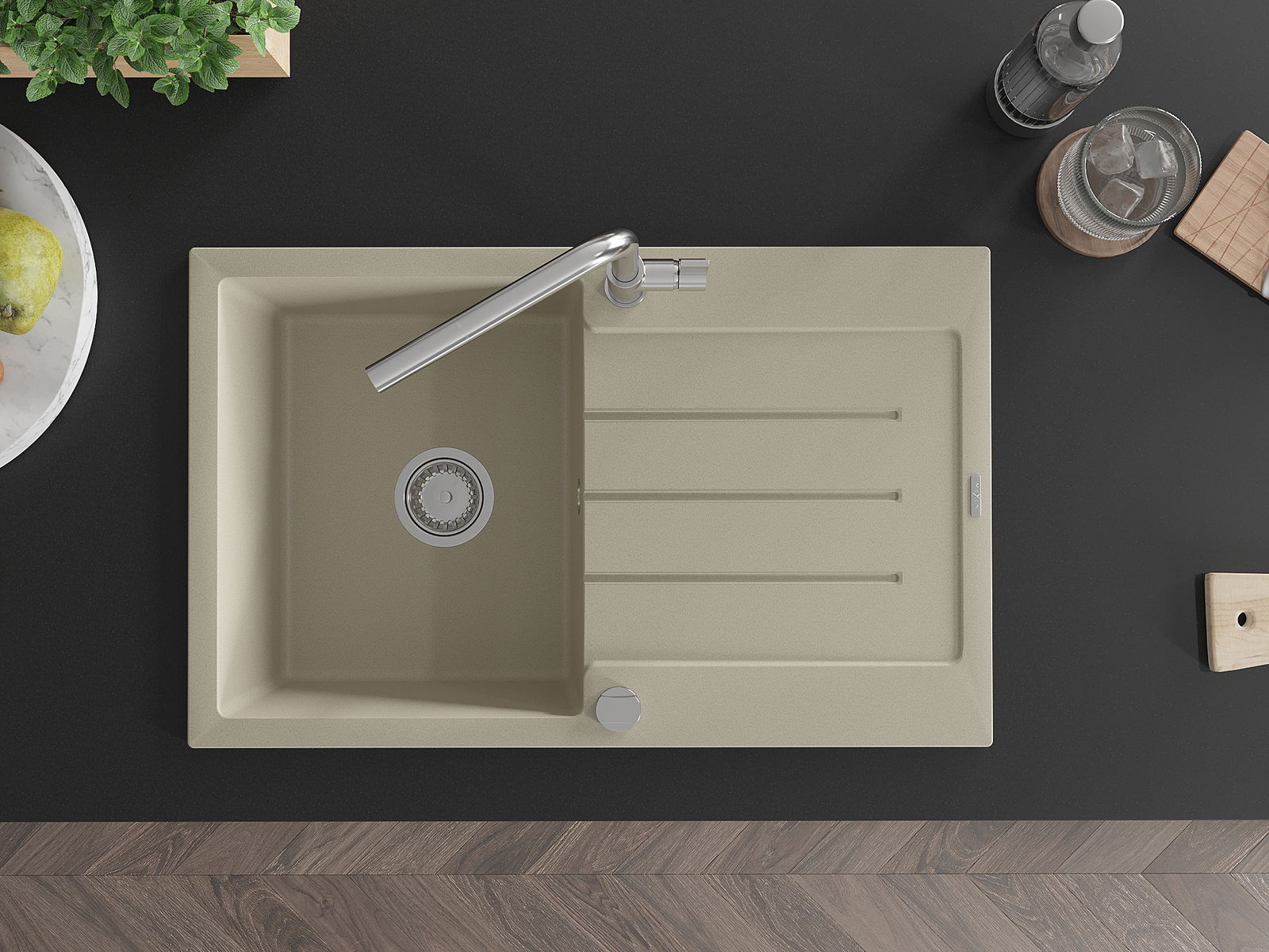 Dřez byl vyroben z vysoce kvalitního granitu. Představuje elegantní a především praktický doplněk každé kuchyně, bez ohledu na její styl. Vysoká kvalita a trvanlivost granitu zajišťují dlouholeté používání.