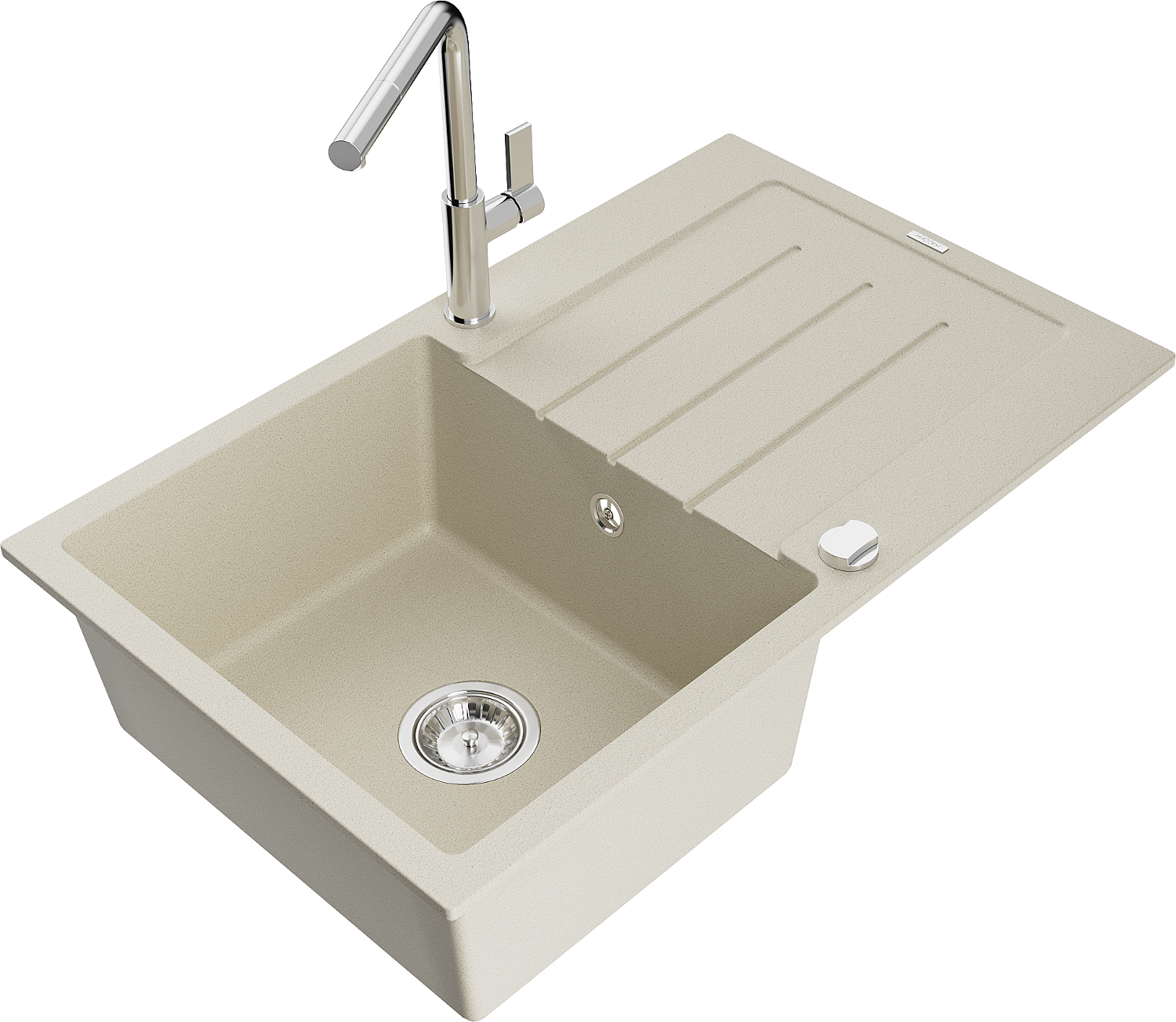 Mexen Bruno granitový dřez 1-komorový s odkapávačem a kuchyňskou baterií Flora, béžový - 6513-69-670401-00