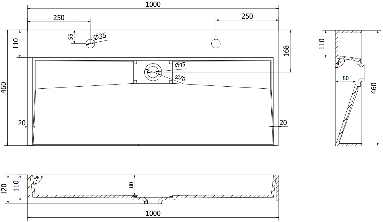 Umyvadlo má otvor, ve kterém lze namontovat baterii. Umožňuje to ušetřit cenný prostor v koupelně a zvýraznit její estetiku. Toto řešení také usnadňuje udržování čistoty kolem umyvadla.