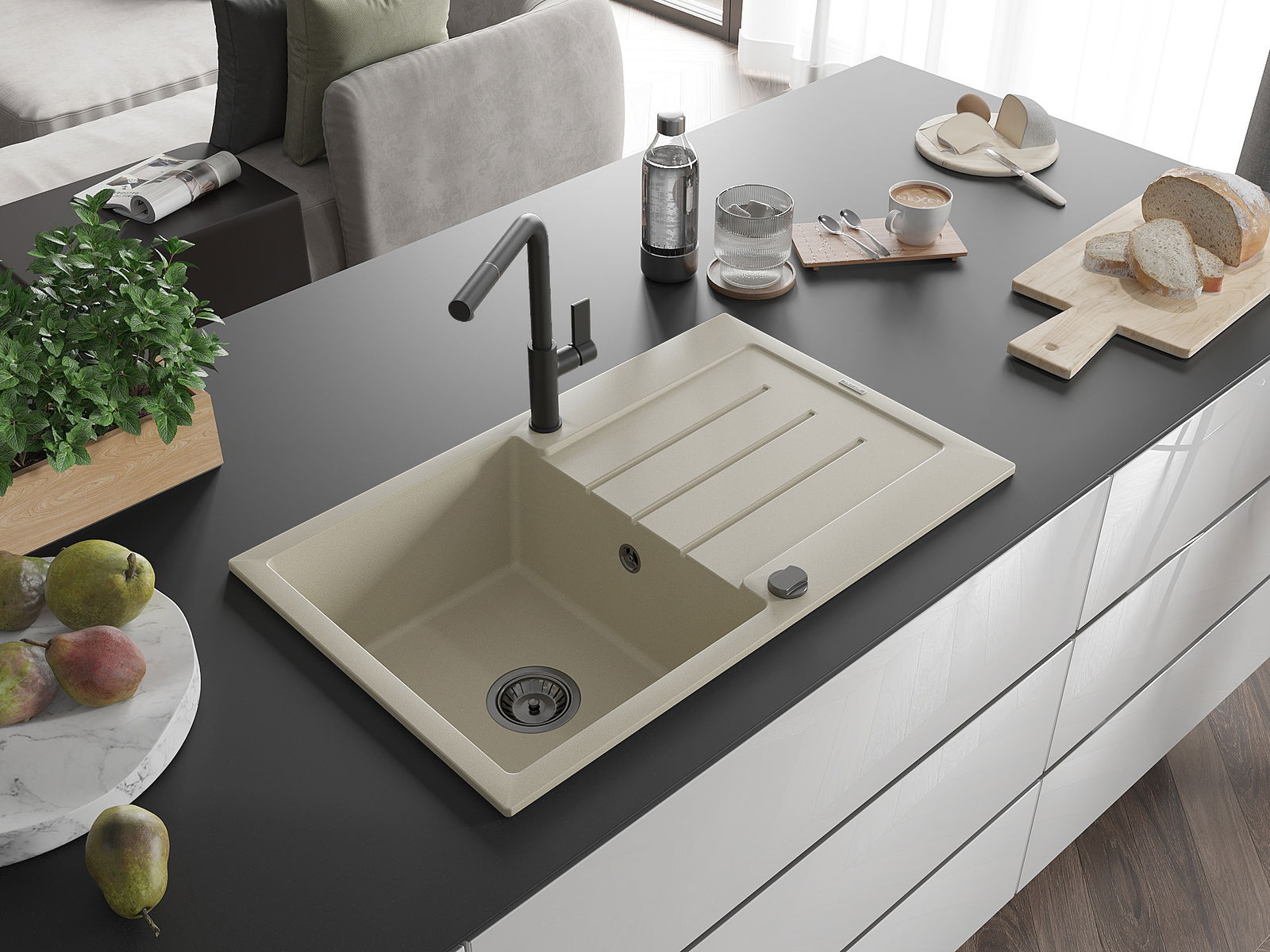 Dřez byl vyroben z vysoce kvalitního granitu. Představuje elegantní a především praktický doplněk každé kuchyně, bez ohledu na její styl. Vysoká kvalita a trvanlivost granitu zajišťují dlouholeté používání.