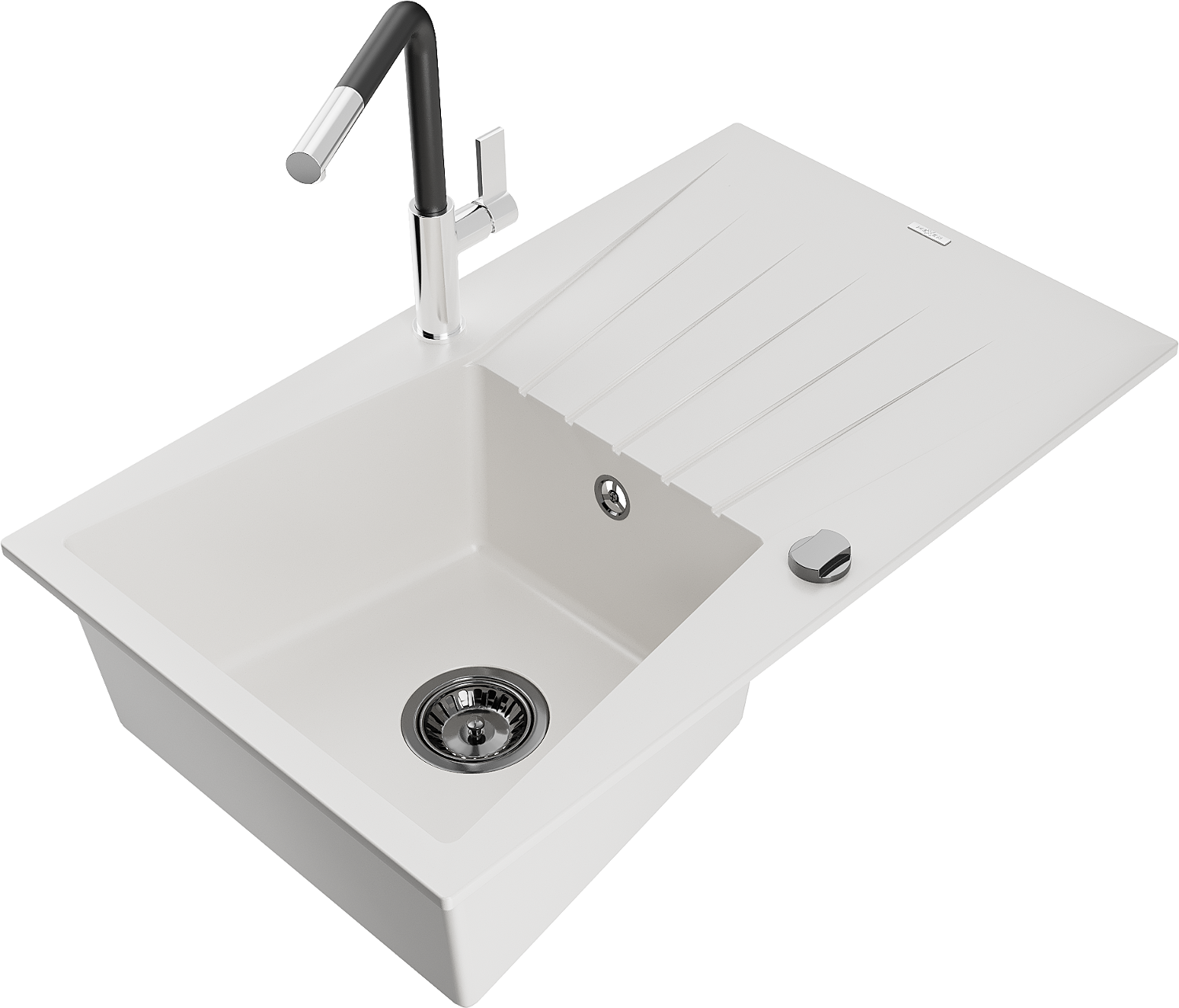 Povrch dřezu je odolný proti skvrnám a zabarvení, což usnadňuje jeho čištění a zachovává jeho barvu po dlouhou dobu používání. Estetický a praktický doplněk každé kuchyně.