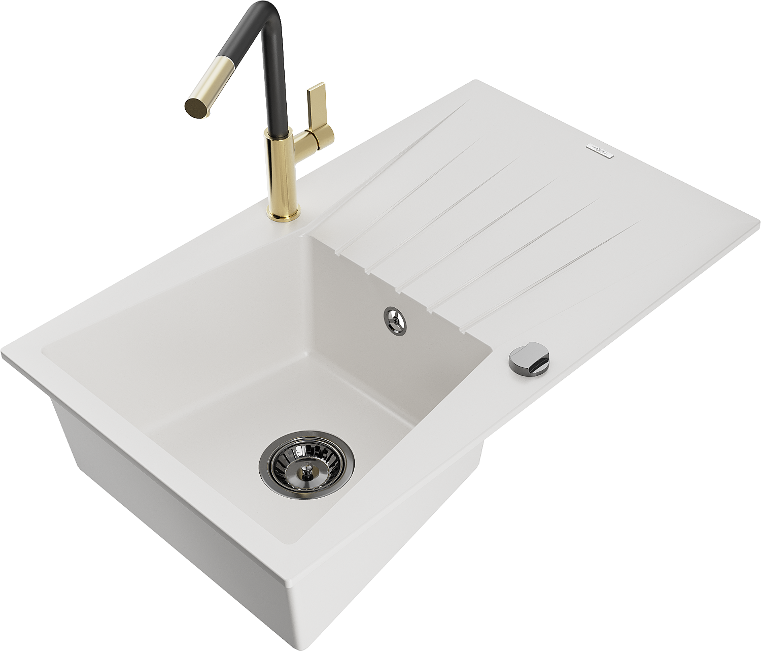 Povrch dřezu je odolný proti skvrnám a zabarvení, což usnadňuje jeho čištění a zachovává jeho barvu po dlouhou dobu používání. Estetický a praktický doplněk každé kuchyně.