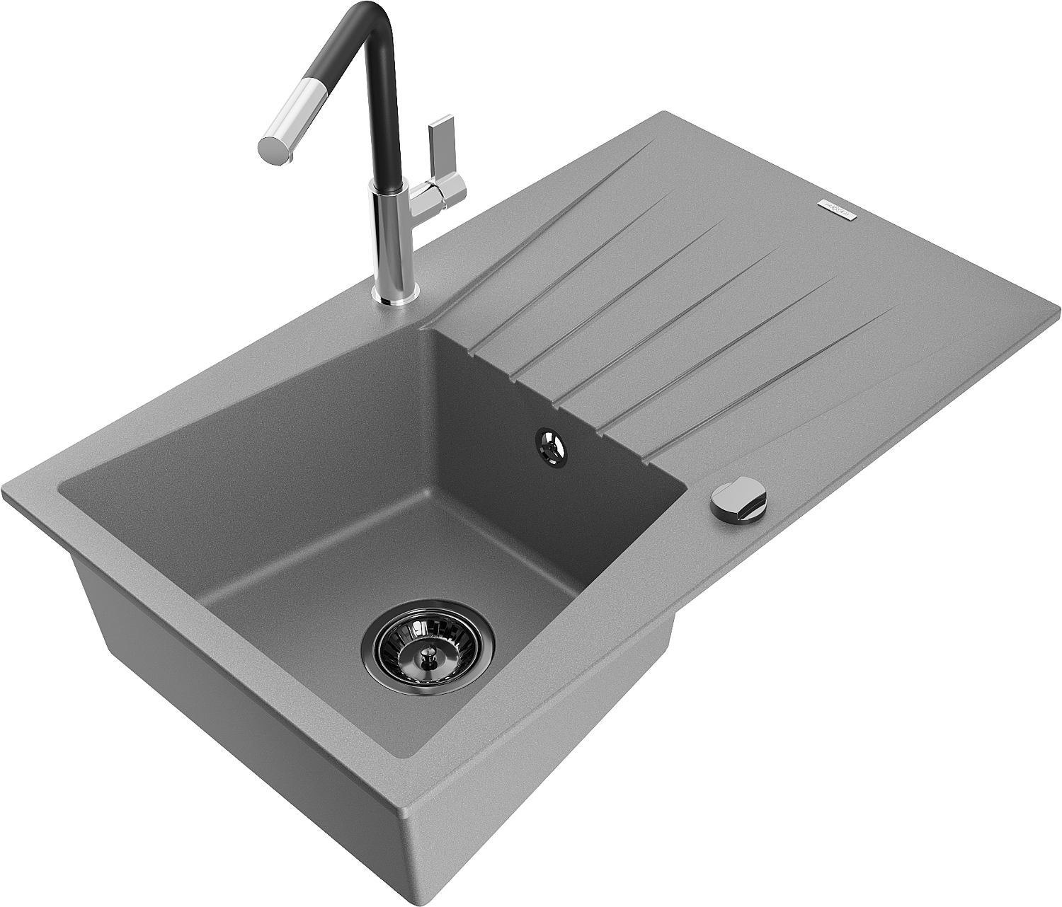 Mexen Cesar žulový dřez s jednou komorou s odkapávačem a kuchyňskou baterií Flora, šedý - 6514-71-670401-07-B