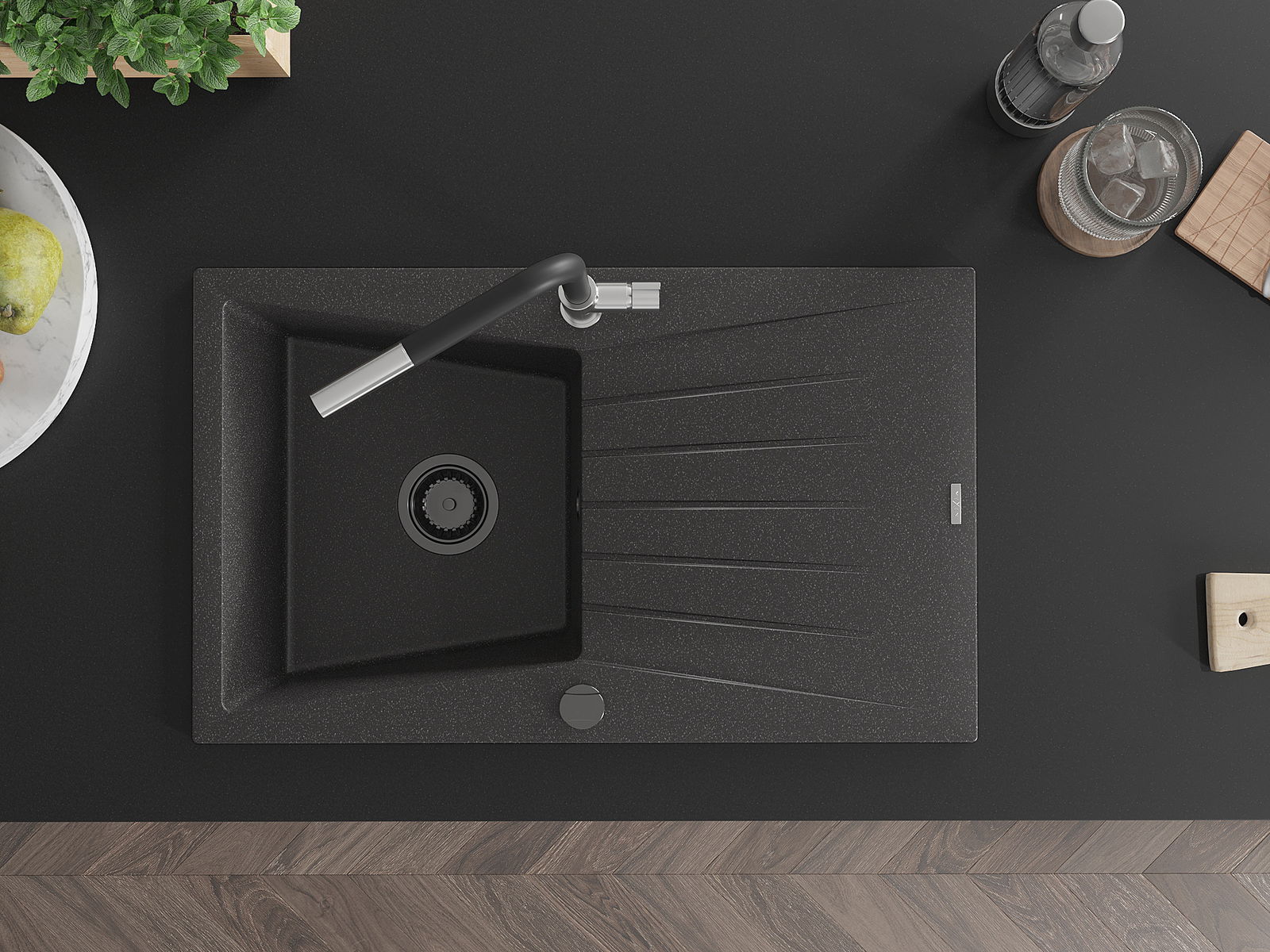 Povrch dřezu je velmi dobře vytvrzený, vyznačuje se výjimečnou odolností proti mechanickému poškození a poškrábání. Trvanlivý materiál umožňuje užívat si dobrý vzhled dřezu po mnoho let používání.