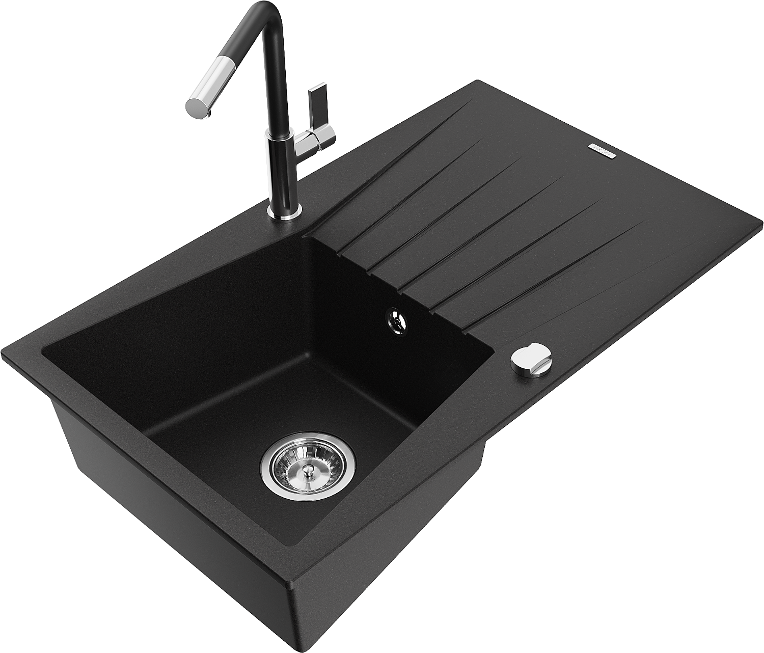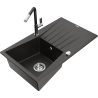 Mexen Cesar granitový dřez s 1 komorou, odkapávačem a kuchyňskou baterií Flora, černý - 6514-77-670401-07
