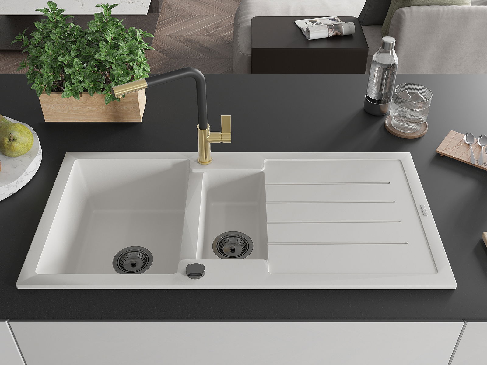 Dřez byl vyroben z vysoce kvalitního granitu. Představuje elegantní a především praktický doplněk každé kuchyně, bez ohledu na její styl. Vysoká kvalita a trvanlivost granitu zajišťují dlouholeté používání.