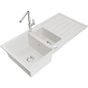 Mexen Andres granitový dřez 1,5-komorový s odkapávačem a kuchyňskou baterií Flora, béžový - 6515-69-670401-00