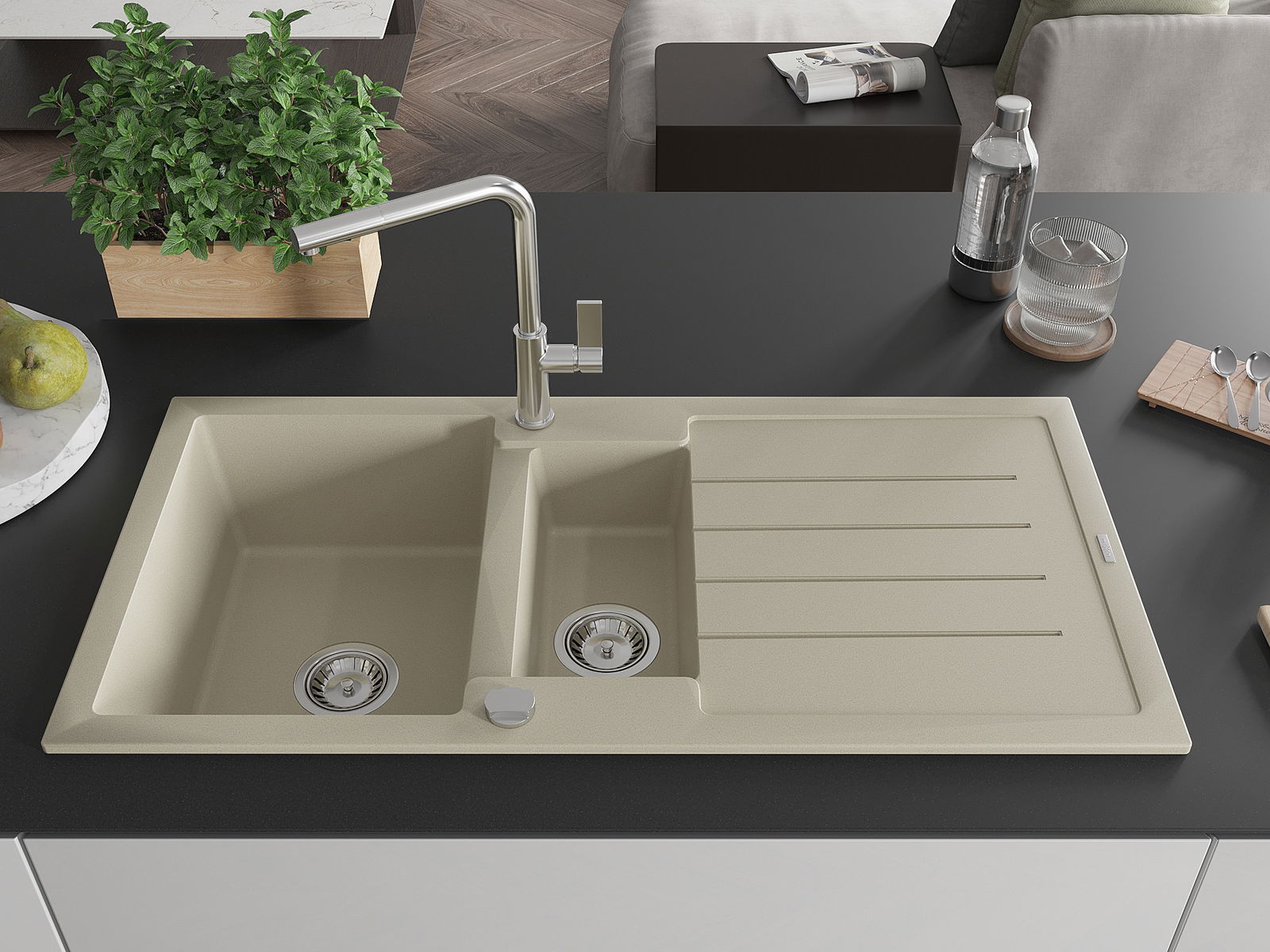 Dřez byl vyroben z vysoce kvalitního granitu. Představuje elegantní a především praktický doplněk každé kuchyně, bez ohledu na její styl. Vysoká kvalita a trvanlivost granitu zajišťují dlouholeté používání.