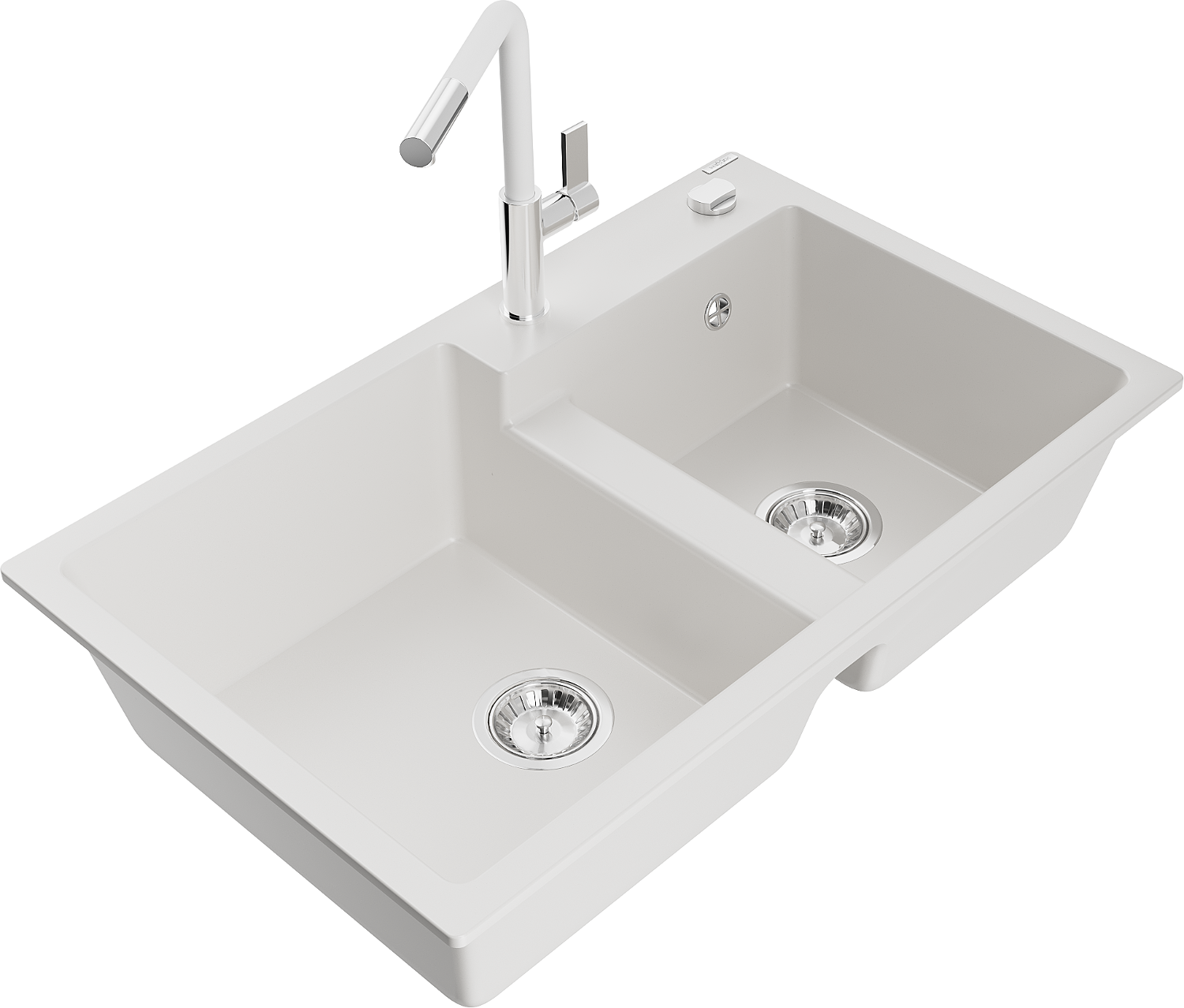 Mexen Tomas granitový dřez dvoukomorový s kuchyňskou baterií Flora, bílý - 6516-20-670401-02