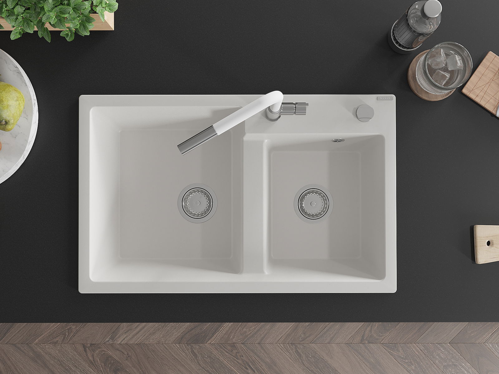 Povrch dřezu je velmi dobře vytvrzený, vyznačuje se výjimečnou odolností proti mechanickému poškození a poškrábání. Trvanlivý materiál umožňuje užívat si dobrý vzhled dřezu po mnoho let používání.