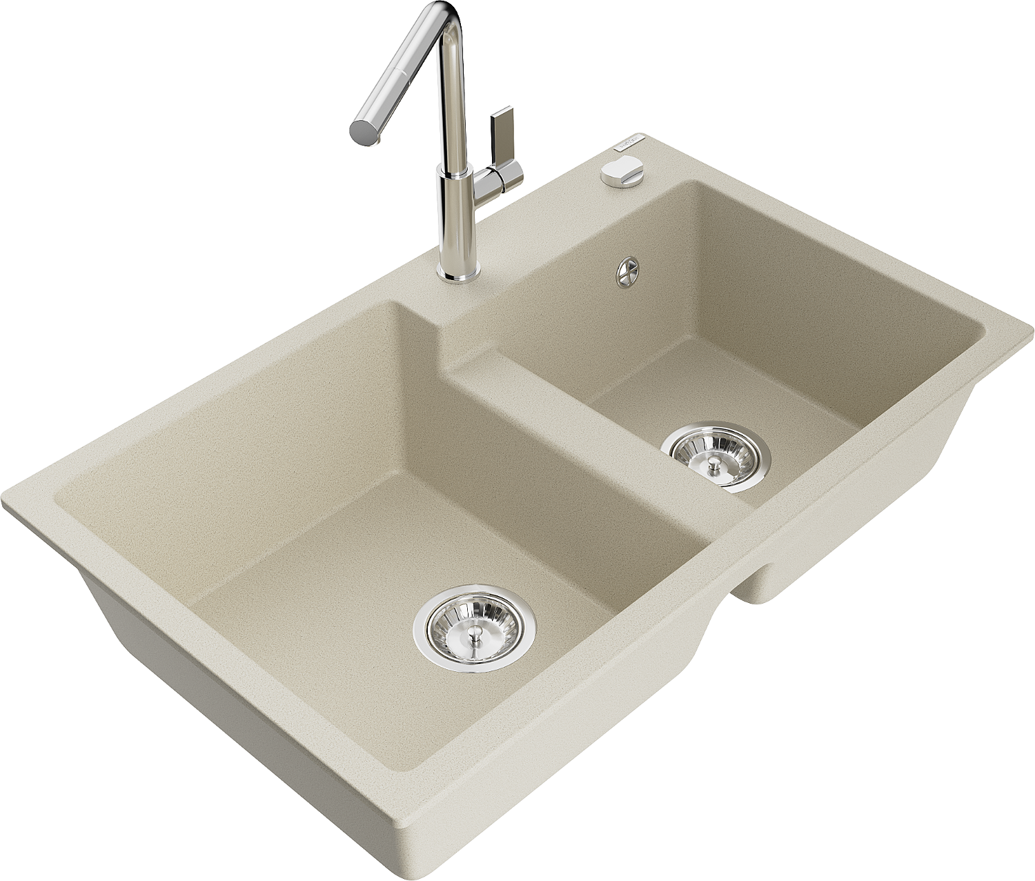 Mexen Tomas granitový dřez 2-komorový s kuchyňskou baterií Flora, béžový - 6516-69-670401-00