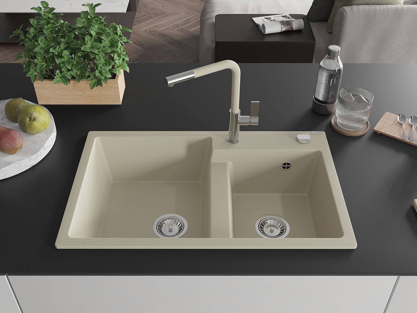 Dřez byl vyroben z vysoce kvalitního granitu. Představuje elegantní a především praktický doplněk každé kuchyně, bez ohledu na její styl. Vysoká kvalita a trvanlivost granitu zajišťují dlouholeté používání.