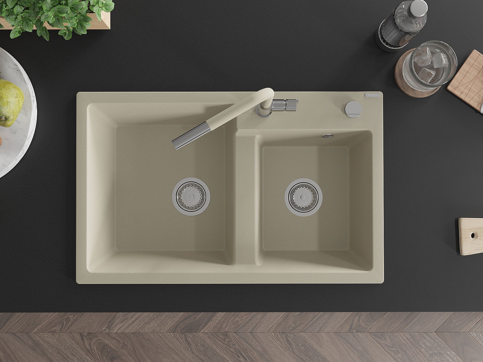 Povrch dřezu je velmi dobře vytvrzený, vyznačuje se výjimečnou odolností proti mechanickému poškození a poškrábání. Trvanlivý materiál umožňuje užívat si dobrý vzhled dřezu po mnoho let používání.