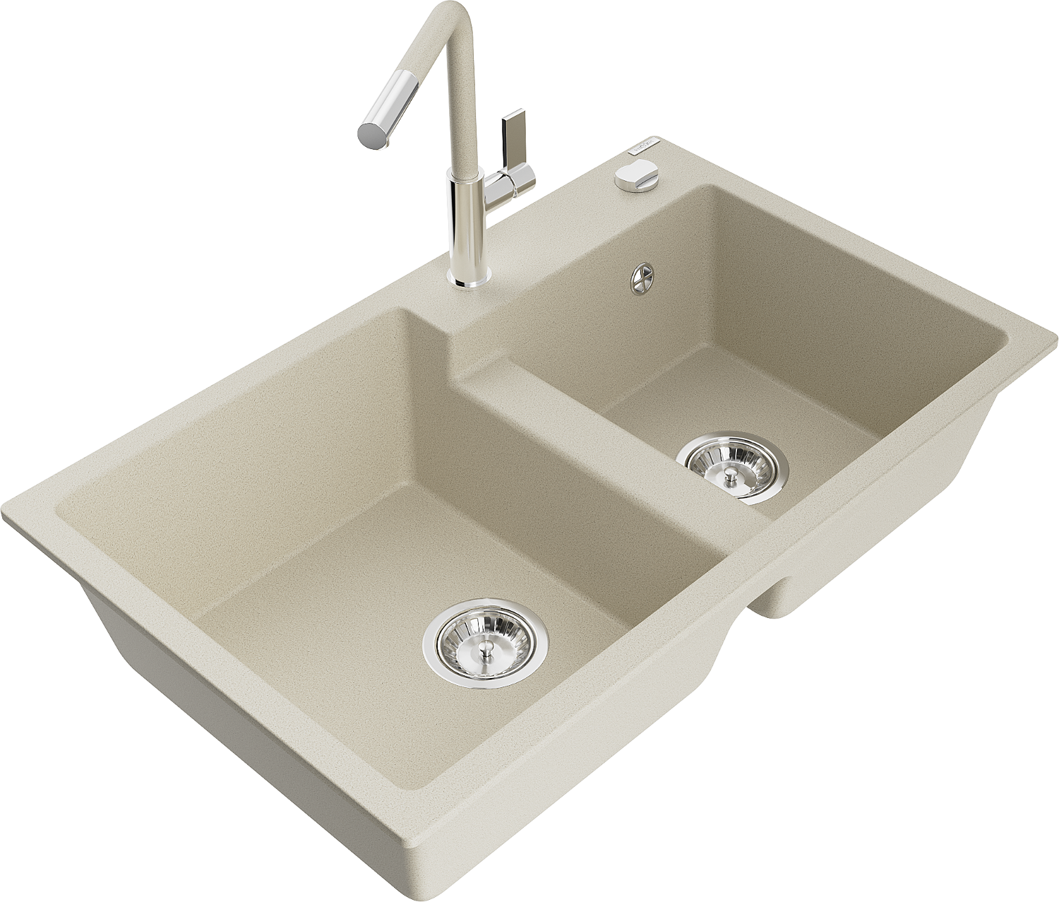 Mexen Tomas granitový dřez dvoukomorový s kuchyňskou baterií Flora, béžový - 6516-69-670401-09