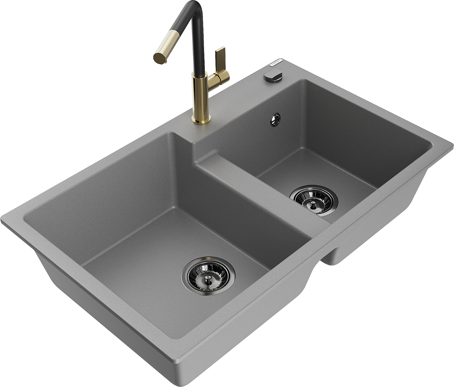 Mexen Tomas granitový dřez 2-komorový s kuchyňskou baterií Flora, šedý - 6516-71-670401-57-B