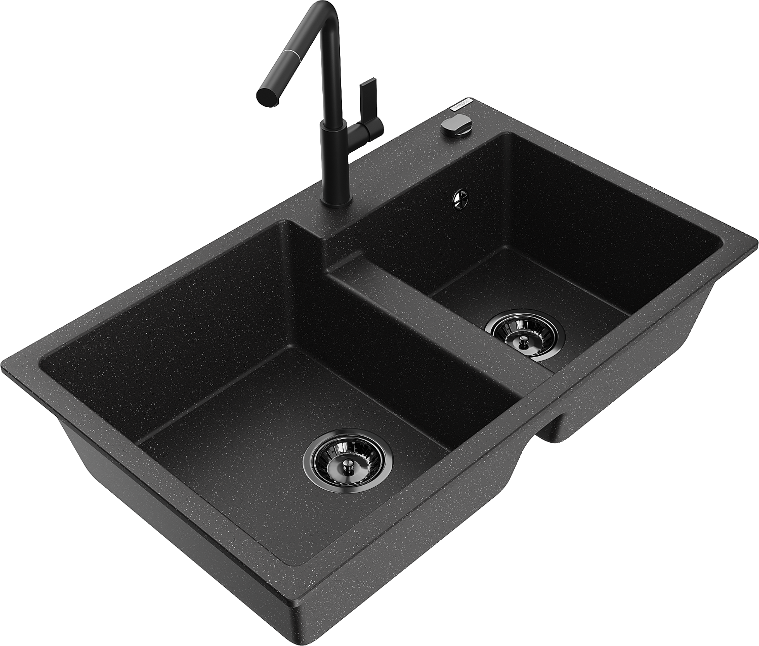Mexen Tomas granitový dřez 2-komorový s kuchyňskou baterií Flora, černý/stříbrný metalík - 6516-73-670401-70-B