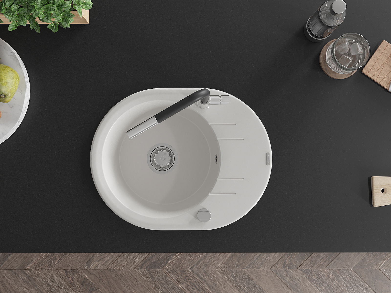 Povrch dřezu je odolný proti skvrnám a zabarvení, což usnadňuje jeho čištění a zachovává jeho barvu po dlouhou dobu používání. Estetický a praktický doplněk každé kuchyně.