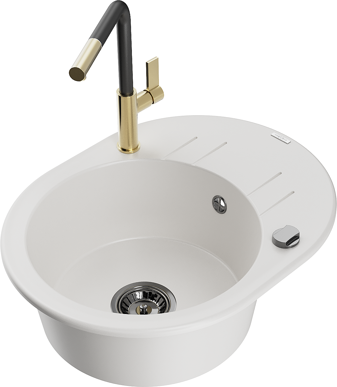 Povrch dřezu je odolný proti skvrnám a zabarvení, což usnadňuje jeho čištění a zachovává jeho barvu po dlouhou dobu používání. Estetický a praktický doplněk každé kuchyně.