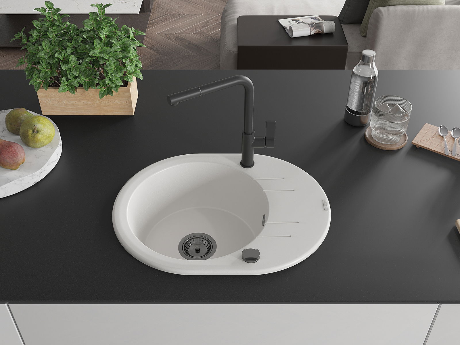 Dřez byl vyroben z vysoce kvalitního granitu. Představuje elegantní a především praktický doplněk každé kuchyně, bez ohledu na její styl. Vysoká kvalita a trvanlivost granitu zajišťují dlouholeté používání.
