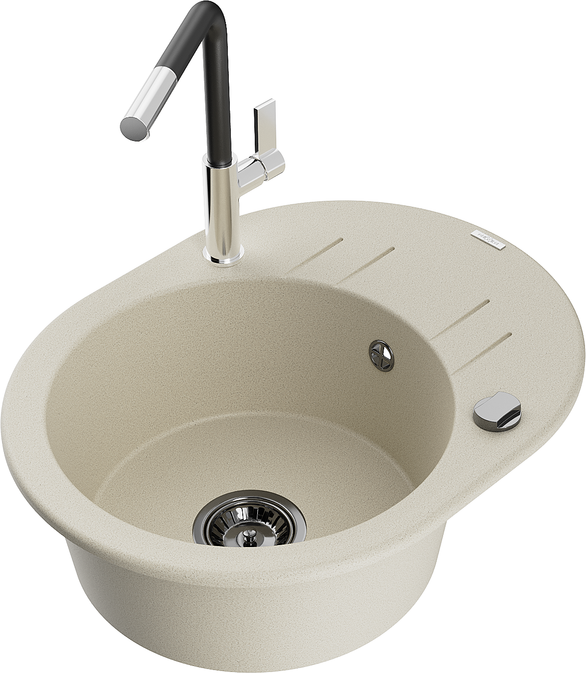 Povrch dřezu je odolný proti skvrnám a zabarvení, což usnadňuje jeho čištění a zachovává jeho barvu po dlouhou dobu používání. Estetický a praktický doplněk každé kuchyně.
