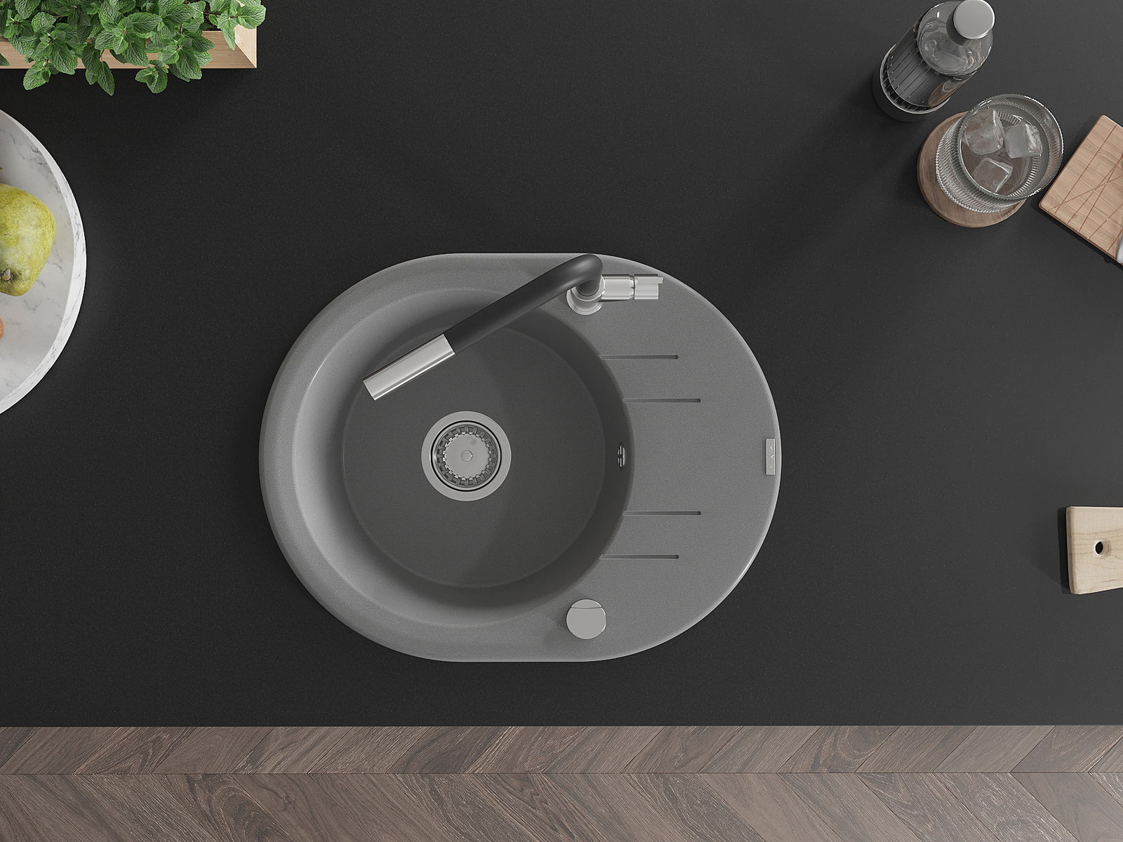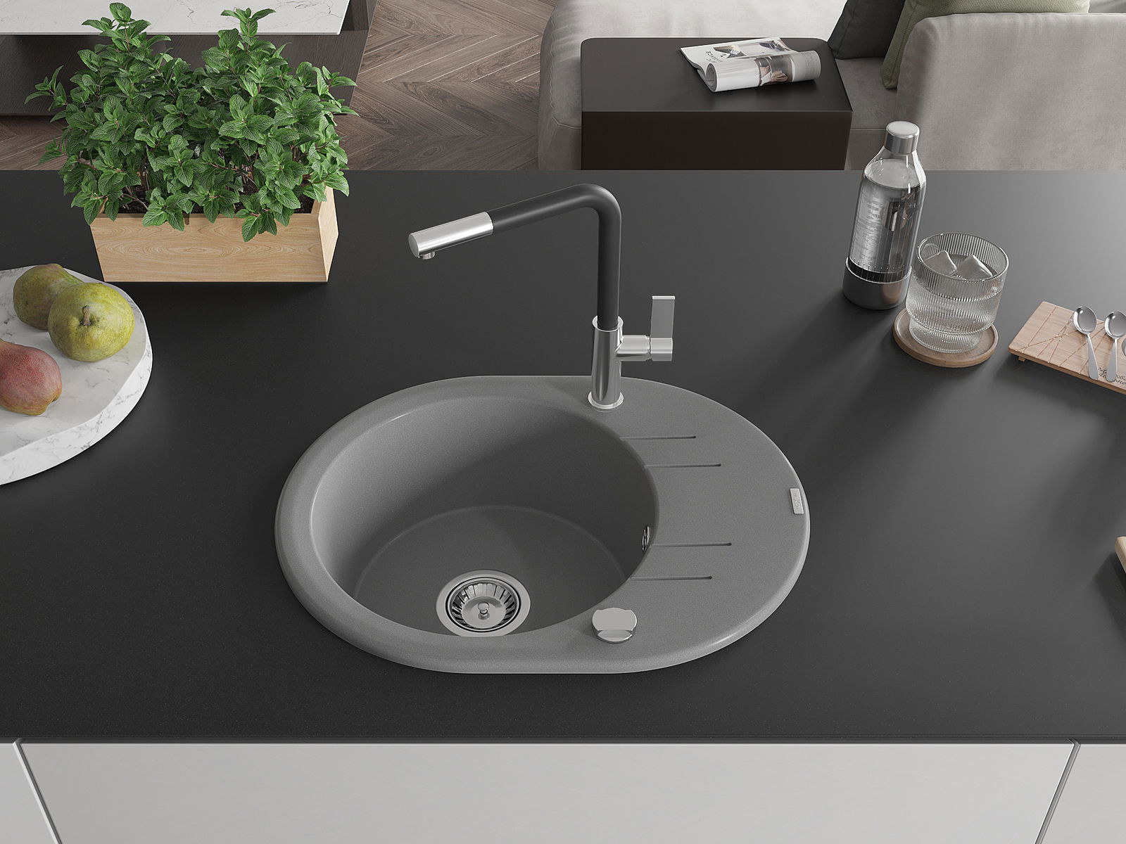 Dřez byl vyroben z vysoce kvalitního granitu. Představuje elegantní a především praktický doplněk každé kuchyně, bez ohledu na její styl. Vysoká kvalita a trvanlivost granitu zajišťují dlouholeté používání.