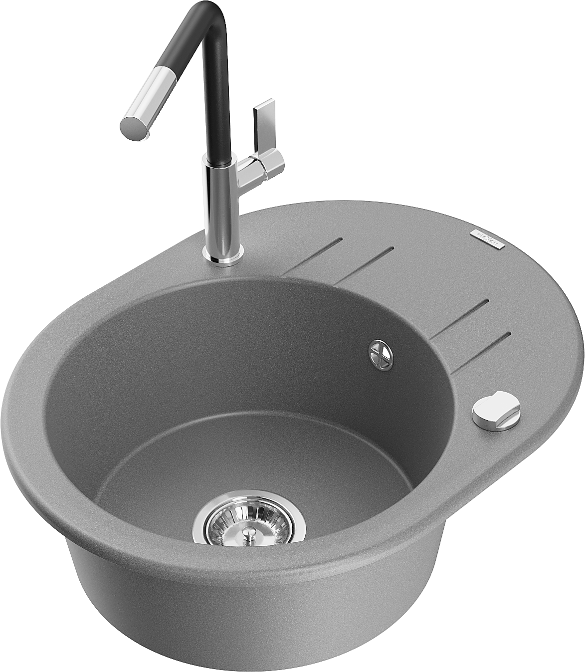 Mexen Kevin granitový dřez 1-komorový s odkapávačem a kuchyňskou baterií Flora, šedý - 6517-71-670401-07