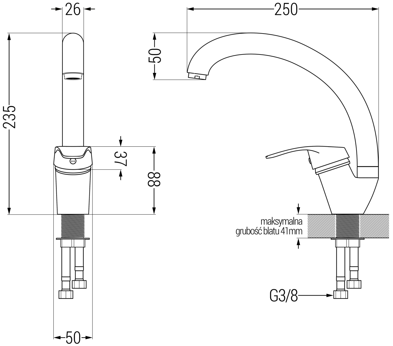 Dosah výpustě: 250 mm