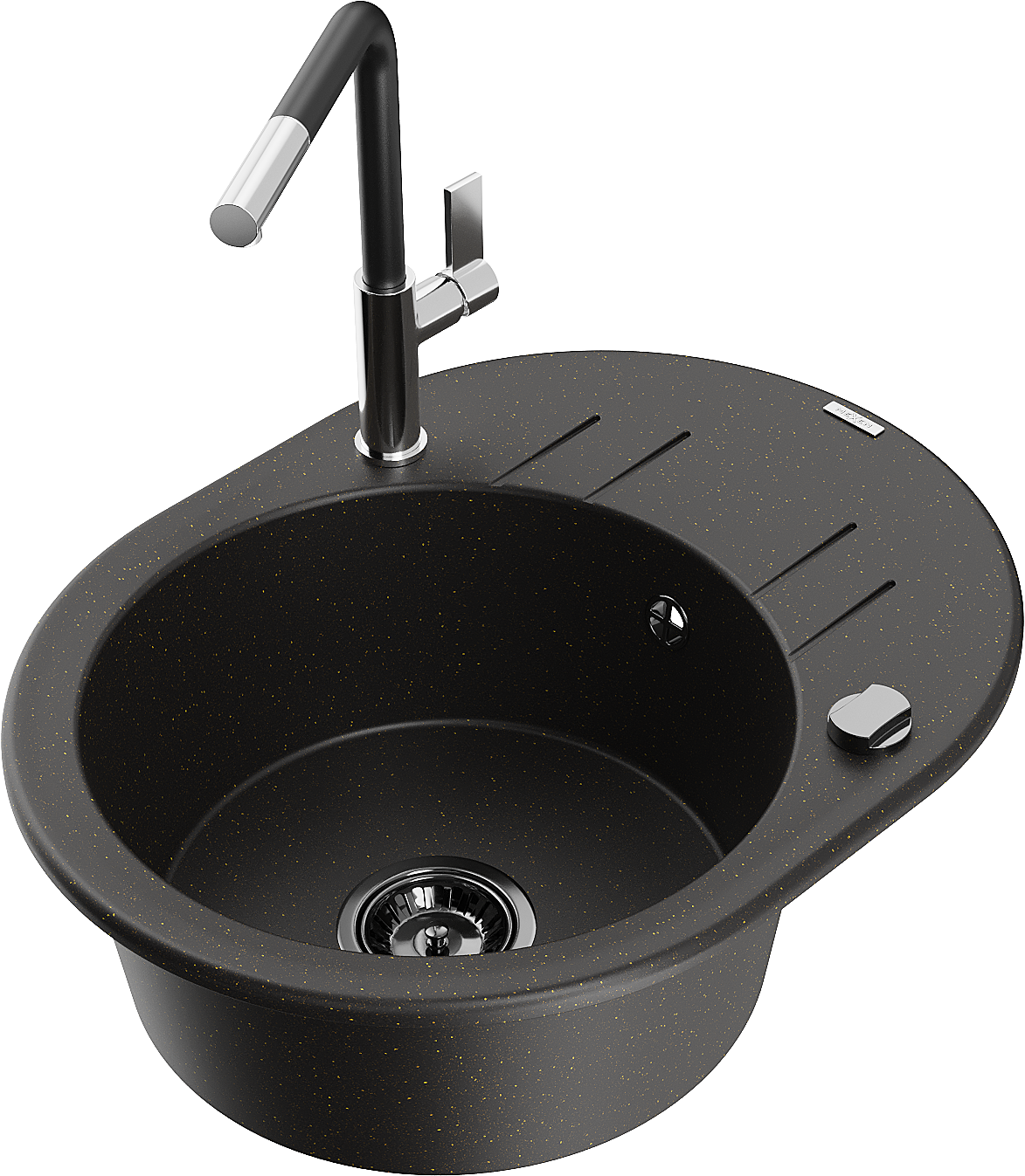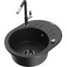 Mexen Kevin granitový dřez 1-komorový s odkapávačem a kuchyňskou baterií Flora, černý/zlatý metalik - 6517-75-670401-07-B