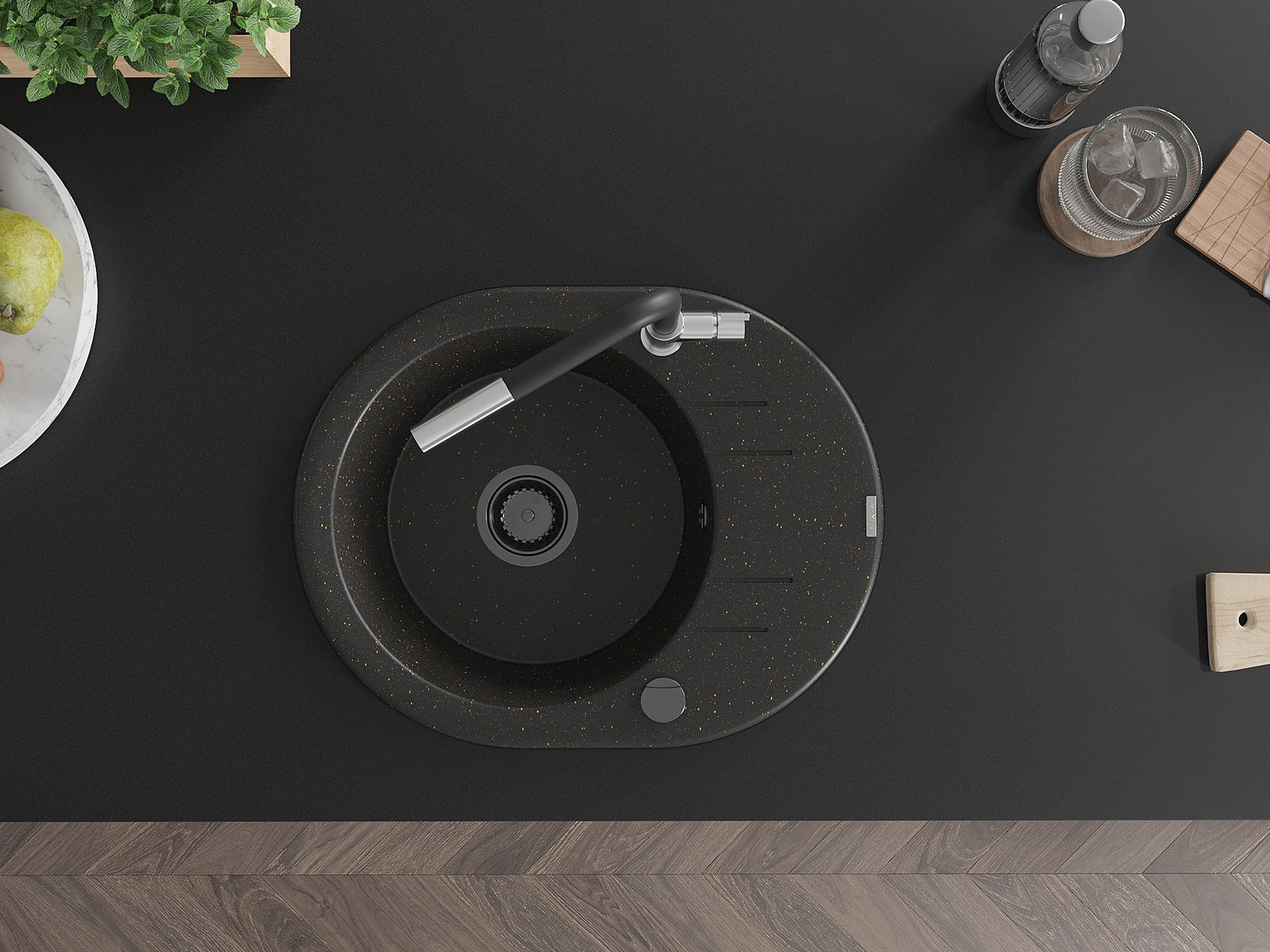 Dřez byl vyroben z vysoce kvalitního granitu. Představuje elegantní a především praktický doplněk každé kuchyně, bez ohledu na její styl. Vysoká kvalita a trvanlivost granitu zajišťují dlouholeté používání.