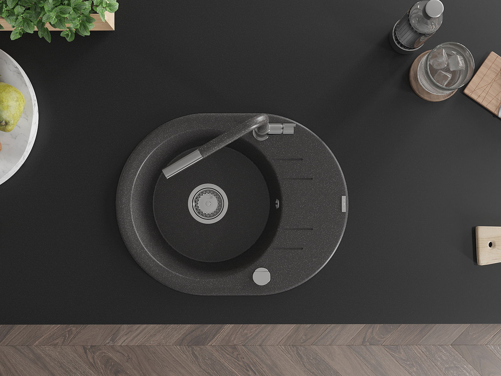 Dřez byl vyroben z vysoce kvalitního granitu. Představuje elegantní a především praktický doplněk každé kuchyně, bez ohledu na její styl. Vysoká kvalita a trvanlivost granitu zajišťují dlouholeté používání.