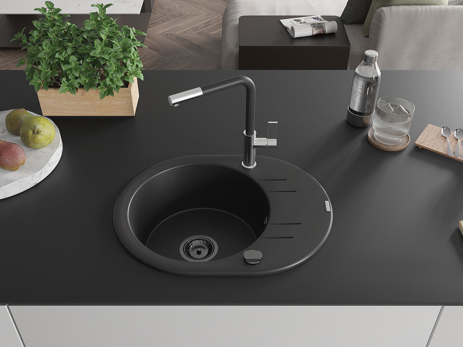 Dřez byl vyroben z vysoce kvalitního granitu. Představuje elegantní a především praktický doplněk každé kuchyně, bez ohledu na její styl. Vysoká kvalita a trvanlivost granitu zajišťují dlouholeté používání.