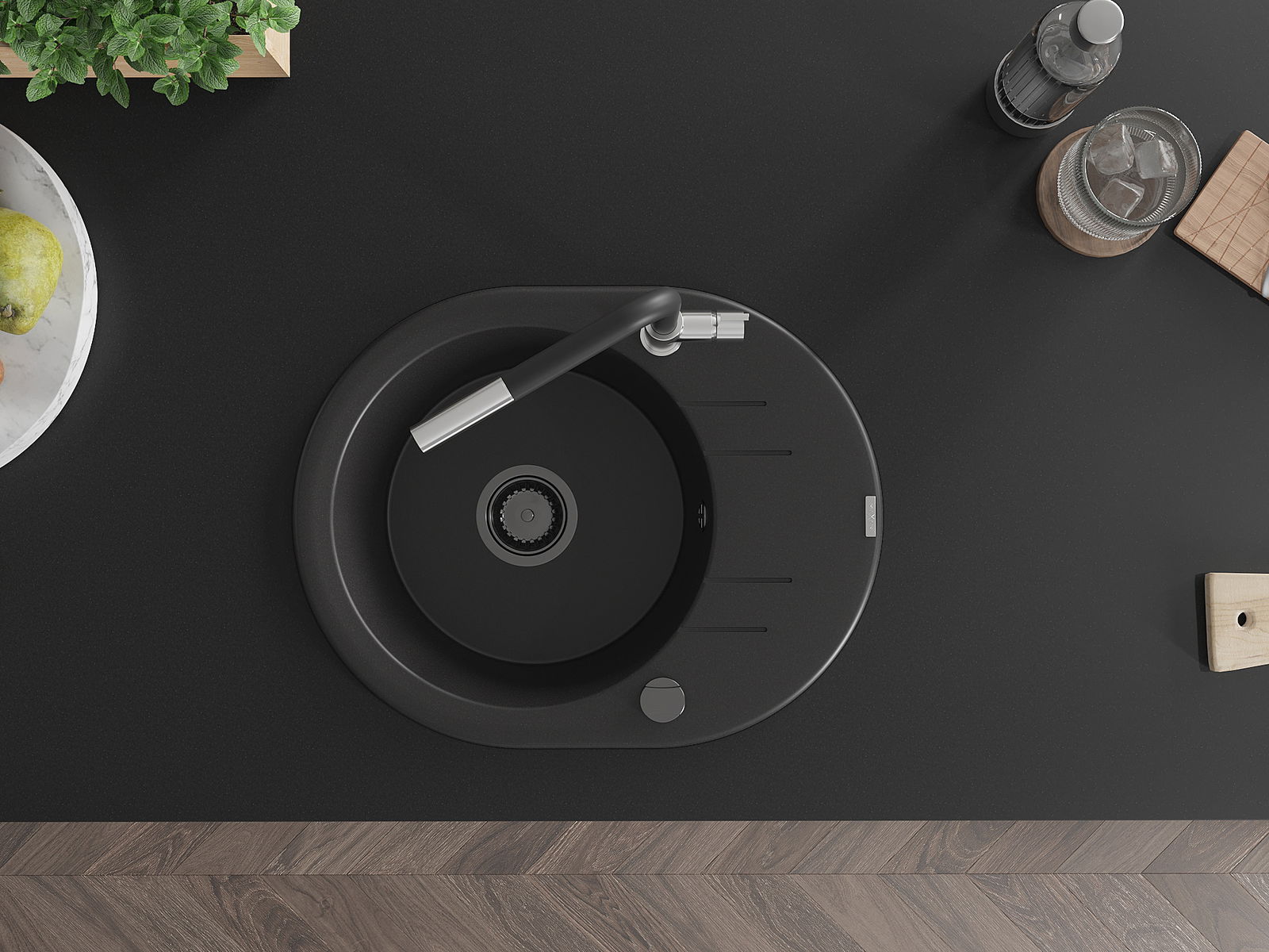 Povrch dřezu je velmi dobře vytvrzený, vyznačuje se výjimečnou odolností proti mechanickému poškození a poškrábání. Trvanlivý materiál umožňuje užívat si dobrý vzhled dřezu po mnoho let používání.
