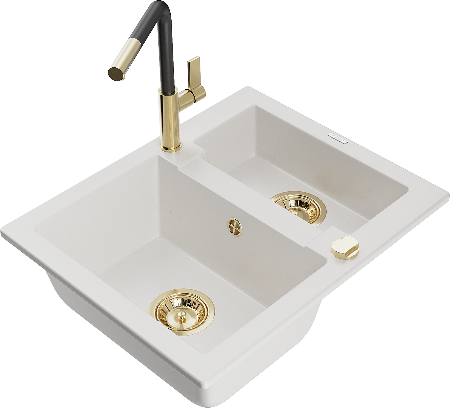 Mexen Carlos granitový dřez 1,5-komorový s kuchyňskou baterií Flora, bílý - 6518-20-670401-57-G