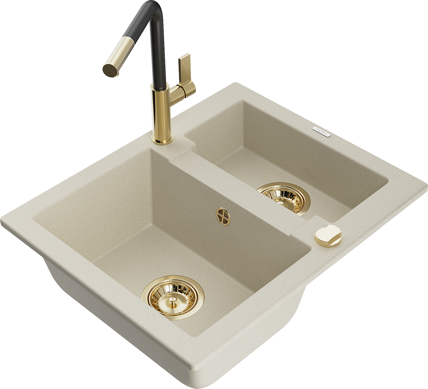 Mexen Carlos žulový dřez 1,5-komorový s kuchyňskou baterií Flora, béžový - 6518-69-670401-57-G