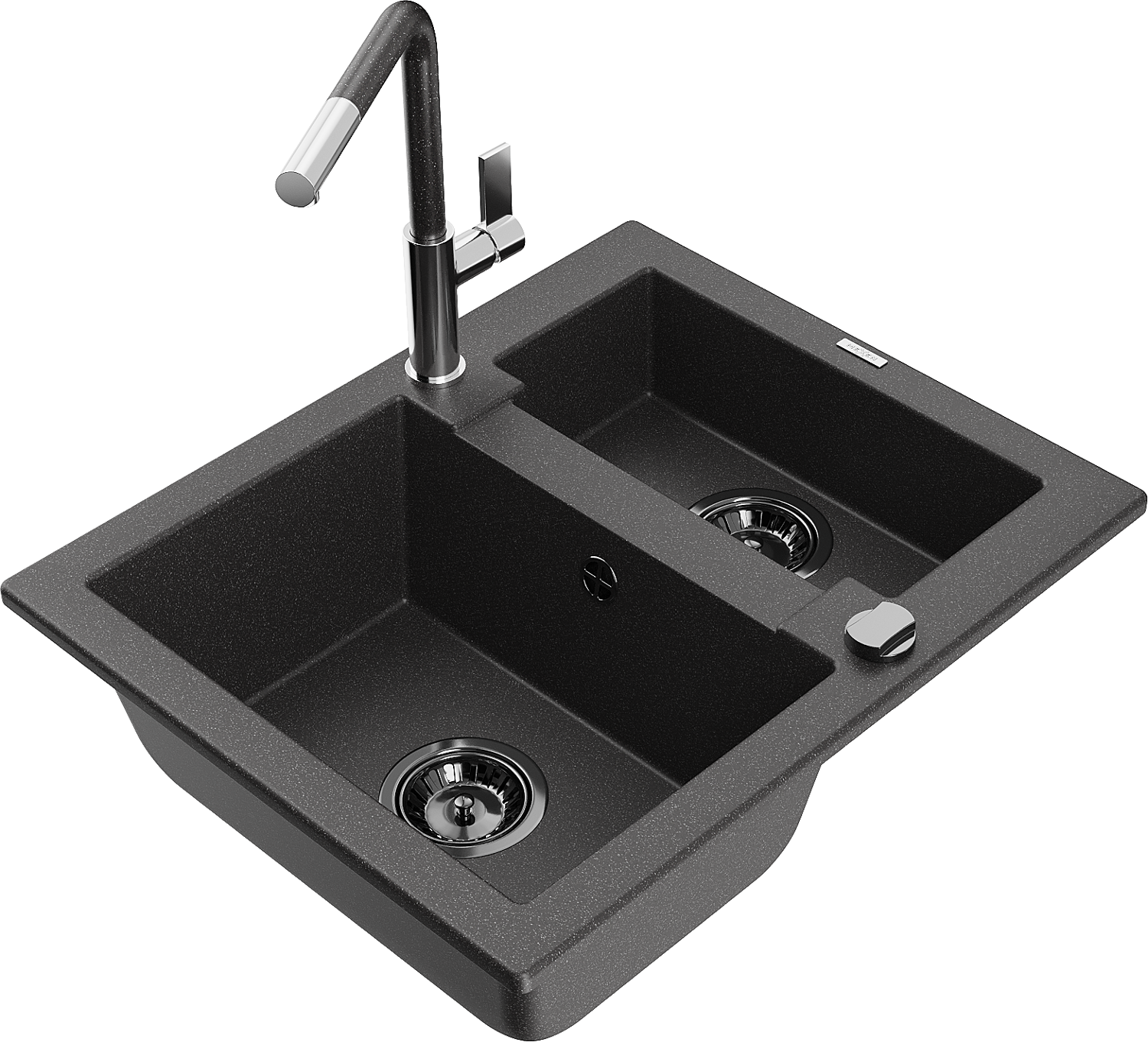 Mexen Carlos žulový dřez 1,5-komorový s kuchyňskou baterií Flora, černý skvrnitý - 6518-76-670401-08-B