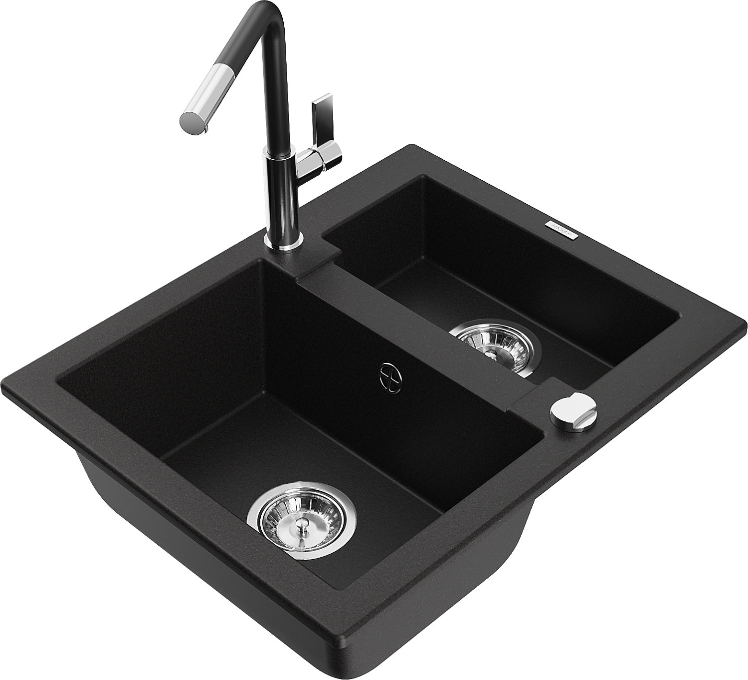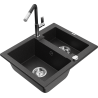 Mexen Carlos granitový dřez 1,5 komorový s kuchyňskou baterií Flora, černý - 6518-77-670401-07